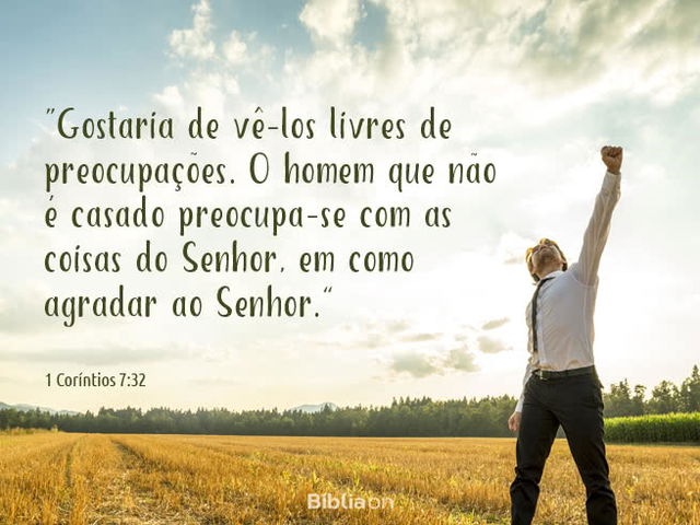 Você está casado? Não procure separar-se. Está solteiro? Não procure esposa. Mas, se vier a casar-se, não comete pecado; e, se uma virgem se casar, também não comete pecado. Mas aqueles que se casarem enfrentarão muitas dificuldades na vida, e eu gostaria de poupá-los disso. (1 Coríntios 7:27-28)